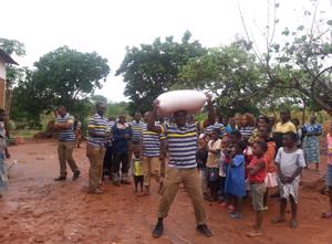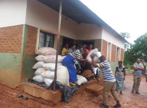 Our team produly distributing bags of maize at Sosola village in Balaka District.